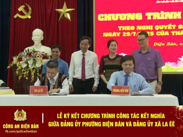 Thay mặt Đảng ủy 02 địa phương, ông Nguyễn Đăng Chương, Bí thư Đảng ủy, Chủ tịch HĐND xã La Êê và ông Nguyễn Minh Hiếu, Bí thư Đảng ủy, Chủ tịch HĐND phường đã ký kết chương trình công tác kết nghĩa giữa Đảng ủy Phường Điện Bàn và Đảng ủy xã La Êê nhằm hỗ trợ nhau phát triển toàn diện trên 7 lĩnh vực: Công tác xây dựng Đảng và hệ thống chính trị; Công tác cán cộ công chức viên chức; Cải cách hành chính, chuyển đổi số; Phát triển kinh tế, hỗ trợ sản xuất, tiêu thụ sản phẩm; Y tế, giáo dục, an sinh xã hội; Văn hóa thể thao và du lịch; Tài nguyên môi trường, ứng phó biến đổi khí hậu.